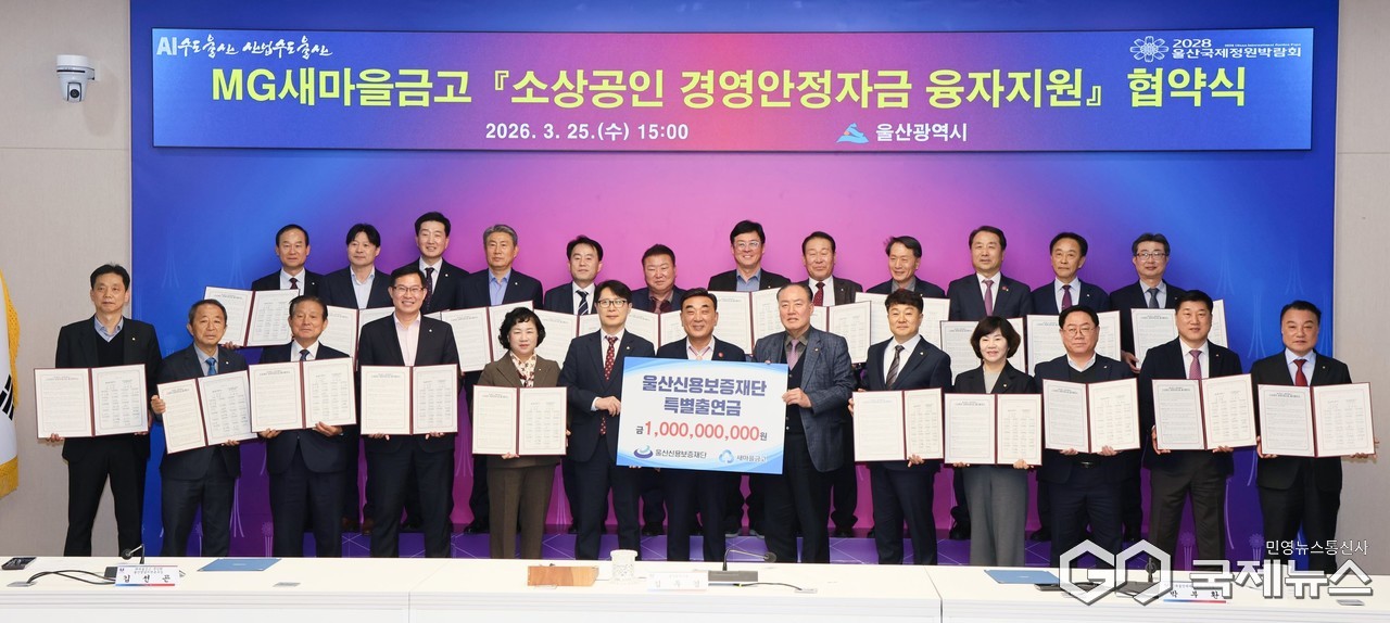 울산시는 25일 시청 본관 2층 대회의실에서 새마을금고와 '소상공인 경영안정자금 융자지원 협약'을 체결했다고 밝혔다.