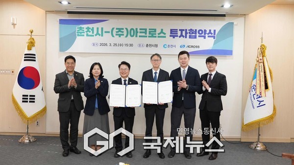 육동한 춘천시장과 김재윤 ㈜아크로스 대표는 이날 시청 접견실에서 만나 공장 증축 생산 설비 확충에 대한 MOU를 체결했다.