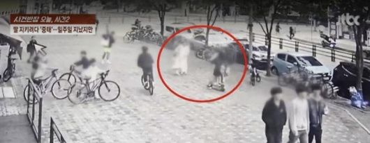지난 10월18일 인천 연수구 송도동 한 인도에서 중학생 2명이 탄 전동 킥보드가 인도에서 속도를 줄이지 않고 2세 아이를 향해 돌진했다. 이를 막아선 30대 아이 엄마가 머리 등을 크게 다쳐 중태에 빠졌다. /사진=JTBC 사건반장 방송 화면 캡처 |