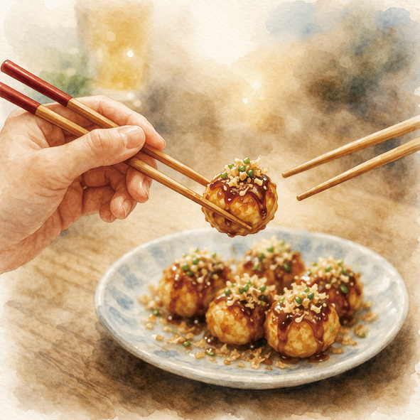 이처럼 젓가락 사용 방법이 달라서 양국 사람들은 다음과 같은 거북한 상황에 놓일 수 있다. 한 일본인 작가가 한국인 친구를 일식집에 초대했다. 후식으로 다코야키가 나왔다. 한국인 친구가 이 음식을 처음 먹어본다고 하자 일본인 작가는 ‘다코야키’에서 ‘다코’는 문어라는 뜻이고 ‘야키’는 굽기라는 뜻이라고 자세히 설명해 주었다. 그리고 친절하게 젓가락으로 다코야키 하나를 집어서 그 친구 접시에 놓아주려고 했다. 이때 한국인 친구는 그것을 자기 젓가락으로 받았다. 이것을 본 일본인 작가의 얼굴이 찡그려졌다. 이런 행위는 장례식에서나 볼 수 있는 아주 드물고 거북한 행위였기 때문이다.