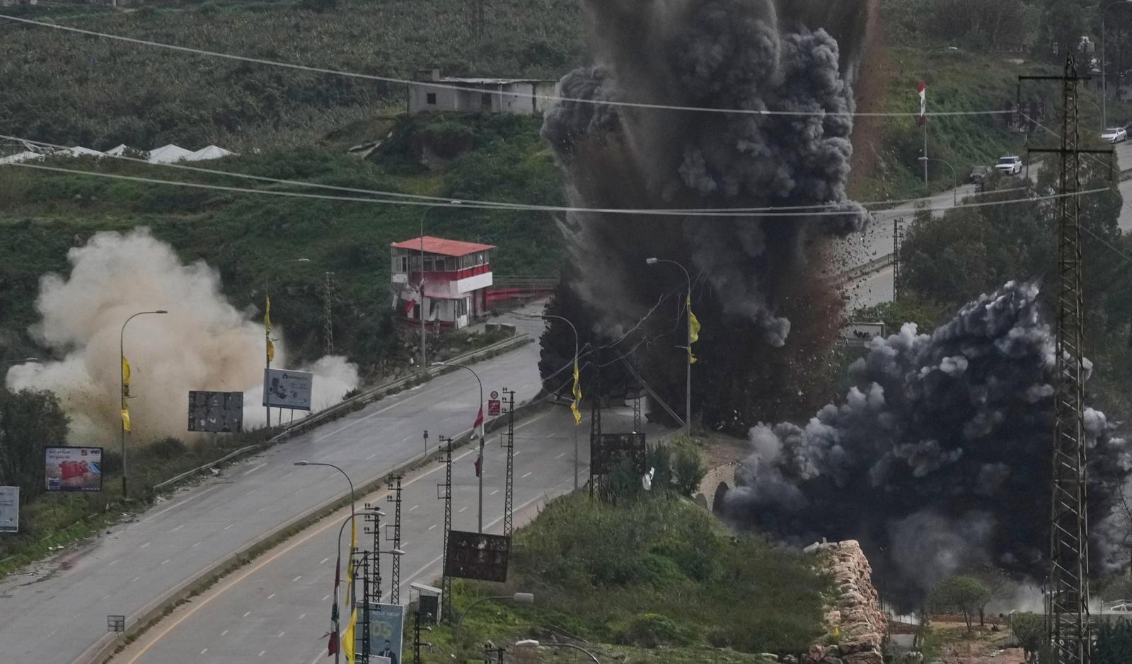22일 레바논 남부 해안도시 티레 근처 까스미아 다리에서 이스라엘군의 공습으로 연기가 치솟고 있다. 최근 이스라엘은 친이란 무장단체 헤즈볼라를 섬멸하겠다며 레바논 남부에서 지상전을 확대하고 있다. 티레=AP 뉴시스 |