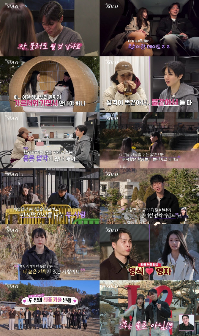 25일 방송된 ENA와 SBS 플러스 리얼 데이팅 프로그램 ‘나는 솔로’에서는 ‘솔로나라 30번지’의 엇갈린 타이밍과 진심의 고백이 교차한 30기 ‘에겐남-테토녀 특집’의 최종 선택이 그려졌다. 그 결과, 영수-옥순, 영식-영자는 ‘최종 커플’이 되었고, 영호-영숙와 영철-정숙은 성격 차이를 뛰어 넘지 못해 서로를 응원하는 사이로 남았다..