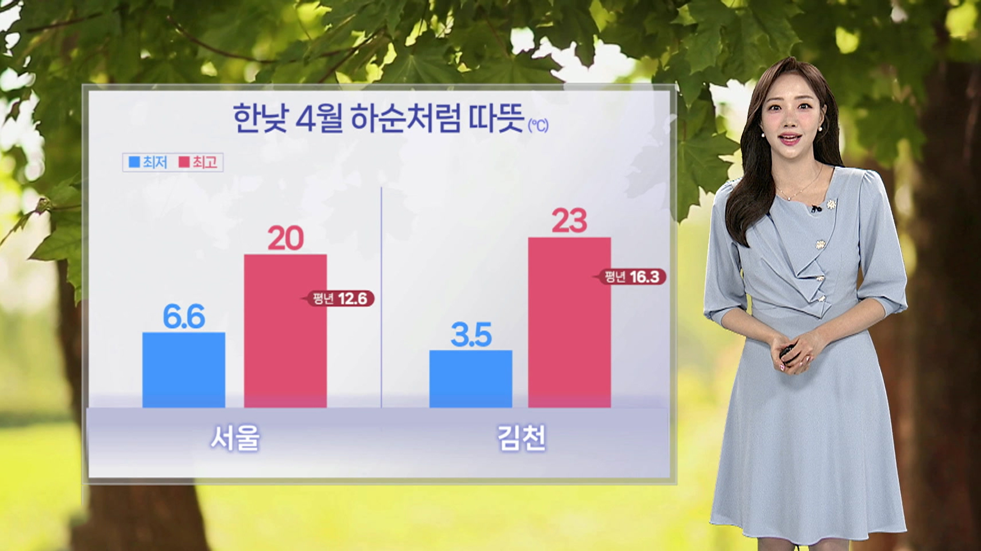 내일도 전국 대부분 지역의 낮 기온이 20도 안팎까지 오르며 4월 하순처럼 따뜻하겠는데요.