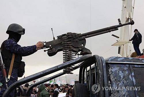 미국·이스라엘의 이란 공격을 규탄하는 집회 현장에 배치된 후티 반군 대원 |