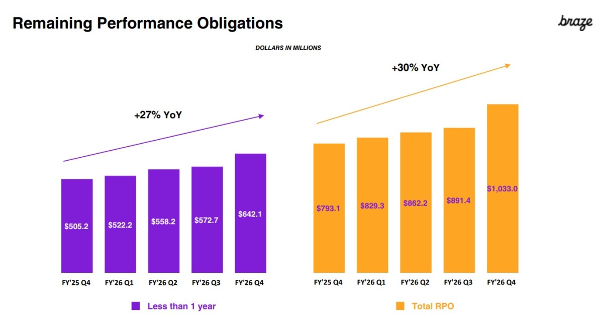 결국 핵심 질문은 하나로 압축된다. 브레이즈가 AI 제품군 확장을 통해 성장 모멘텀을 유지하는 동시에 마진을 의미 있게 개선해 낼 수 있느냐는 것이다. 경영진은 2027 회계연도 비GAAP 영업마진 8% 달성을 목표로 내세우고 있으며, 애널리스트들은 같은 해 브레이즈가 연간 기준 수익성을 달성할 것으로 보고 있다.