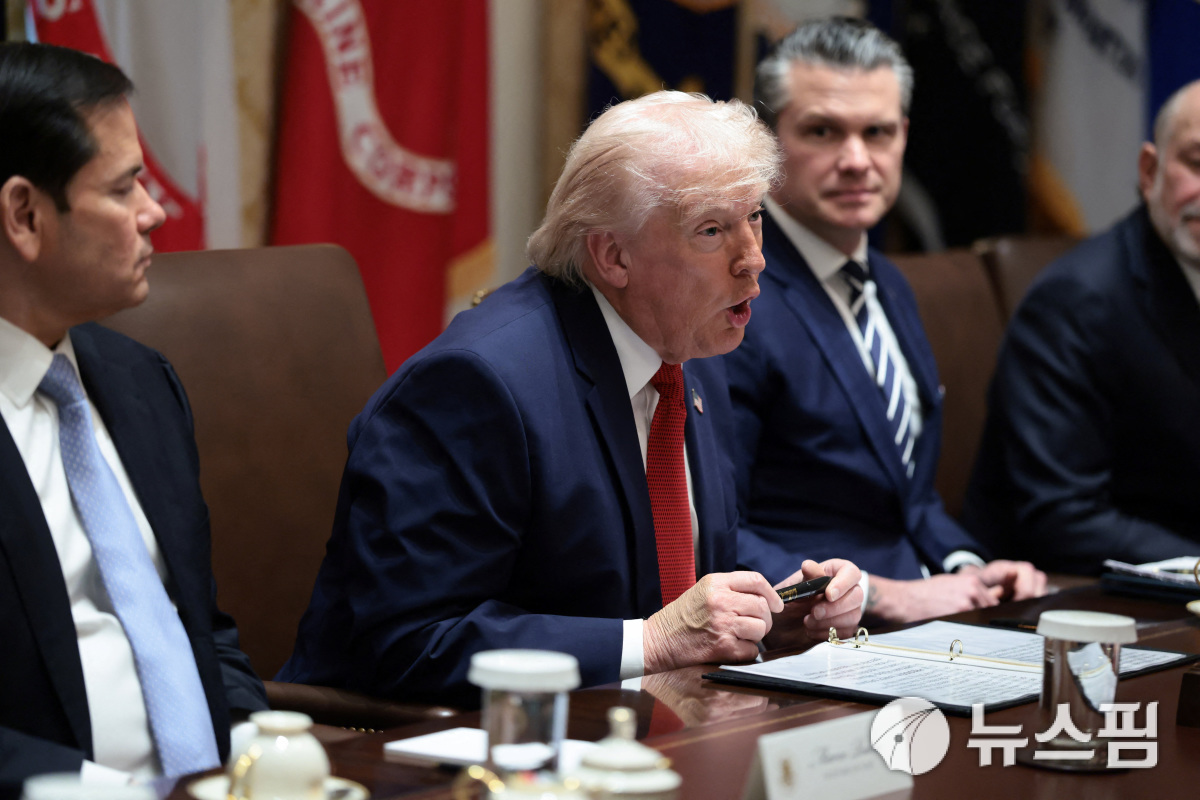 도널드 트럼프 미국 대통령이 2026년 3월 26일(현지시간) 워싱턴 D.C. 백악관에서 열린 국무회의 도중 발언하고 있다. [사진=로이터 뉴스핌] |