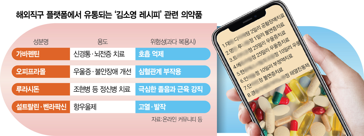 실제 제약 업계 등에 따르면 온라인 구매가 가능한 신경통 치료제인 가바펜틴은 김소영의 범행에 활용된 벤조디아제핀계 신경안정제와 병용 시 호흡 부전을 초래할 수 있다. 설트랄린·벤라팍신 등 항우울제 성분은 다른 약물과 섞여 복용될 경우 고열이나 발작 등 부작용을 유발할 위험이 높다. 일반적으로 의약품 해외직구 사이트들은 이 같은 성분들을 일반 영양제로 허위 신고해 국내로 배송하는 것으로 알려져 있다.