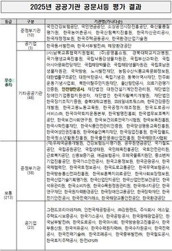 2025년 공공기관 공문서등 평가결과 등급표. |
