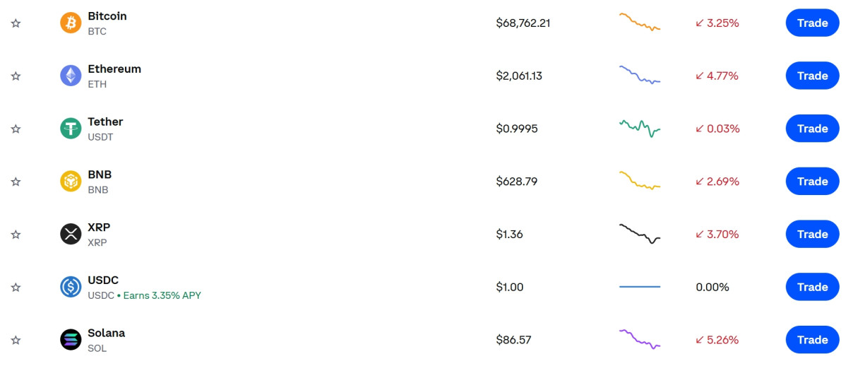 코인 약세장…비트코인 3.2%·이더리움 4.7%·솔라나 5.2% 하락, 코인 가격·시세…BNB·리플 등 동반 하락 |