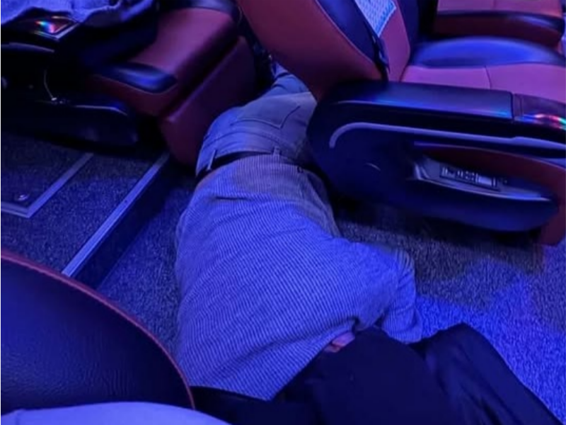 [파이낸셜뉴스] 심야 고속버스 안에서 바닥에 드러누워 잠을 자고, 자리에 돌아간 뒤에도 앞좌석에 다리를 올린 채 잠든 남성이 공분을 사고 있다.