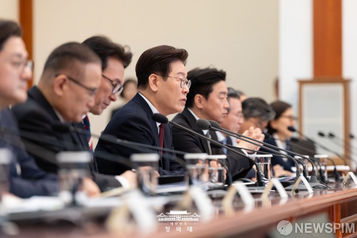 [서울=뉴스핌] 이재명 대통령이 지난 26일 서울 종로구 청와대에성 열린 제2차 비상경제점검 회의에서 발언을 하고 있다. [사진=청와대] 2026.03.27 photo@newspim.com
