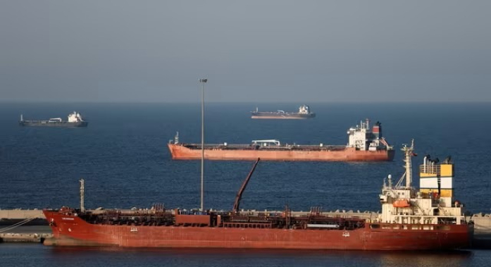 이란 전쟁 장기화로 호르무즈 해협 봉쇄가 지속되자 오만 무스카트항 인근에 루오지아산 유조선이 정박해 있다. [사진=뉴스1] |