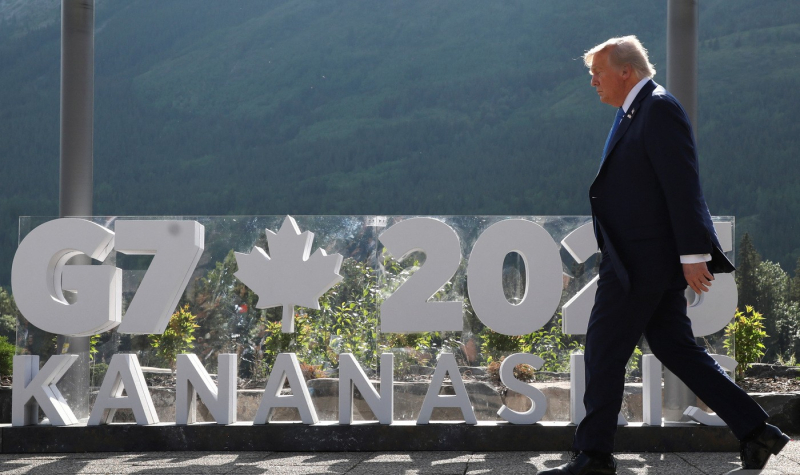 지난해 5월 16일 도널드 트럼프 미국 대통령이 캐나다 앨버타주 캐내내스키스에서 열린 G7 정상회의에 참석하고 있다.[사진=뉴스1] |