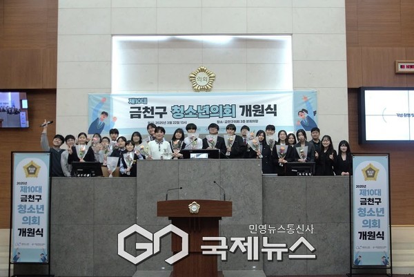 (서울=국제뉴스) 김서중 기자 = 금천구(구청장 유성훈)가 3월 28일 금천구의회 본회의장에서 '제11대 금천구 청소년의회 개원식'을 개최, 청소년의 정책 참여를 확대한다고 밝혔다.