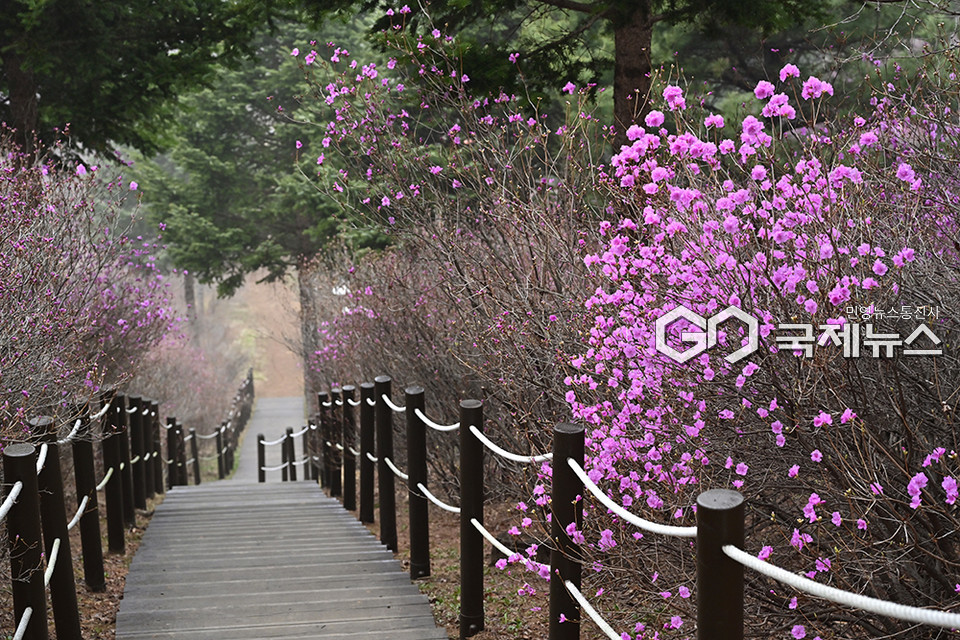 (부천=국제뉴스) 안희영 기자 = 부천시청은 3월부터 5월까지 원미산과 도당산, 무릉도원수목원, 백만송이장미원에서 봄꽃(진달래, 벚꽃, 튤립, 장미)과 함께하는 페스타 봄을 운영한다. 27일 부천시 부천진달래동산을 찾은 시민들이 진달래꽃을 바라보며 운동과 산책을 즐기고 있다.