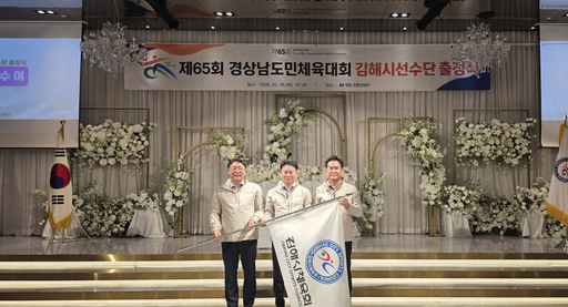 김해시체육회가 26일 JW웨딩컨벤션센터에서 제65회 경상남도민체육대회 김해시선수단 출정식 및 격려만찬을 개최했다.
