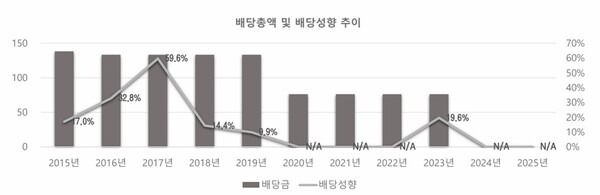 호텔신라 배당총액 및 배당성향 추이. 2024년도와 2025년도 2년 연속 배당을 실시하지 않았다. /사진=호텔신라 경영보고서. |