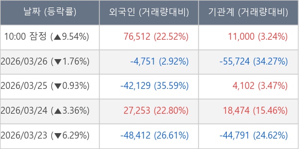 [표] 주요 기관별 순매매량 (단위 주)