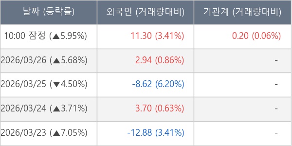 [장중수급포착] 씨티케이, 외국인/기관 동시 순매수… 주가 +5.95% 뉴스핌 원문 입력 2026.03.27 10:18 댓글 첫 댓글을 작성해보세요 글자 크기 변경 작게 기본 크게 가장 크게 출력하기 페이스북 공유 엑스 공유 카카오톡 공유 주소복사 주소복사가 완료되었습니다 기사로 돌아가기