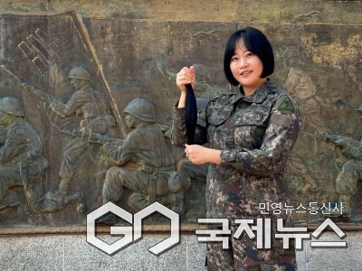 제53보병사단 군사경찰대 김진화 중사가 모발기부를 위해 자른 머리카락을 들고, 앞으로의 다양한 나눔 활동 실천을 다짐하고 있다/제공=53사단 |