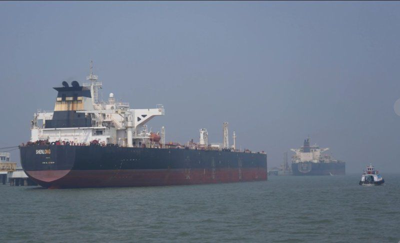사우디아라비아에서 원유를 싣고 호르무즈 해협을 통과한 라이베리아 국적의 유조선 선룽 수에즈 막스호가 지난 3월12일 인도 뭄바이항에 입항하고 있는 모습이 포착됐다. AP·뉴시스 |