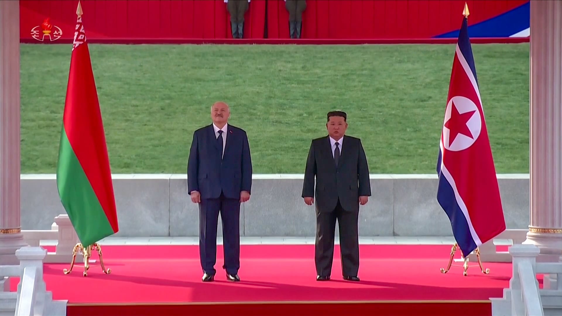 지난 25일 평양 김일성광장에서 루카셴코 벨라루스 대통령을 환영하는 의식이 진행됐다고 조선중앙TV가 26일 보도했다. /조선중앙TV 화면 캡처, 연합뉴스 |