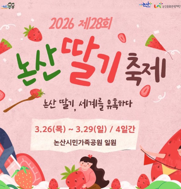 오는 29일까지 논산 시민가족공원에서 열리는 제28회 논산 딸기축제는 올해 '논산 딸기, 세계를 유혹하다'라는 주제로 더욱 풍성한 프로그램을 선보인다.