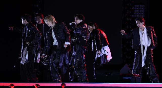 그룹 방탄소년단(BTS)이 21일 서울 광화문 광장에서 정규 5집 '아리랑'(ARIRANG) 발매를 기념해 무료 공연 'BTS 컴백 라이브: 아리랑'(BTS THE COMEBACK LIVE|ARIRANG)을 열고 있다. [사진=연합뉴스] |