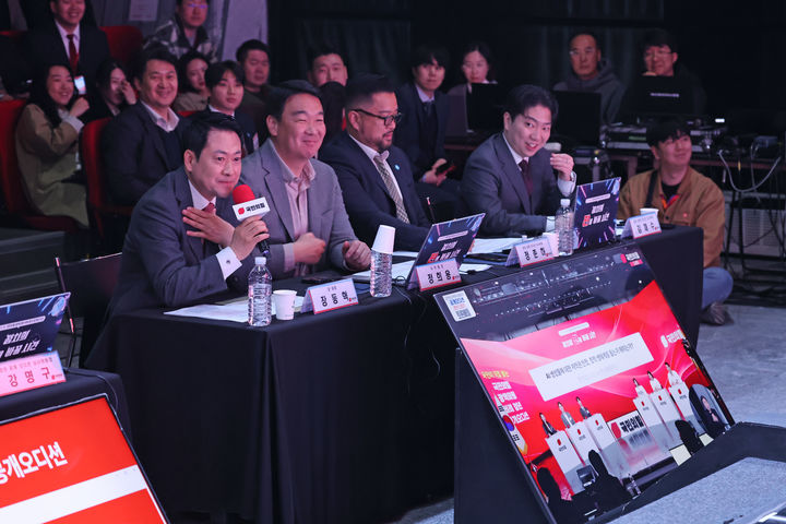 [서울=뉴시스] 김금보 기자 = 장동혁 국민의힘 대표가 28일 서울 강서구 아싸아트홀에서 열린 '국민의힘 광역의원 비례 청년 공개 오디션'에서 심사를 하고 있다. (사진=국민의힘 제공) 2026.03.28. photo@newsis.com *재판매 및 DB 금지