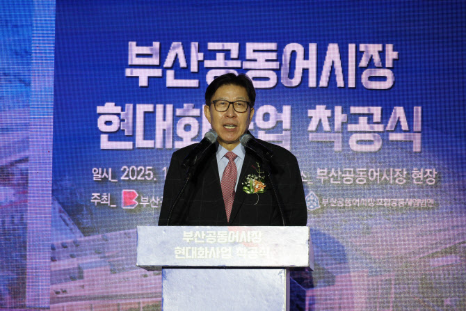 박형준 부산시장이 작년 2월 19일 부산 서구 부산공동어시장에서 열린 현대화사업 착공식에서 기념사를 하고 있다. 2025.12.19 연합뉴스 |
