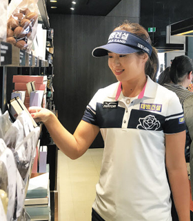 누구를 위한 초콜릿? - 이정은이 최근 호주 애들레이드에서 새 캐디 애덤 우드워드에게 줄 밸런타인 초콜릿을 고르는 모습. /이정은 |