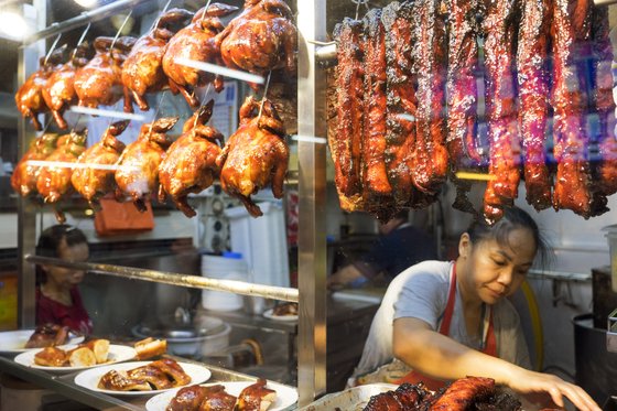 6.5㎡(약 2평) 규모의 호커 찬 본점. 간장 소스에 재운 닭고기가 매장을 가득 채운다. 백종현 기자 |