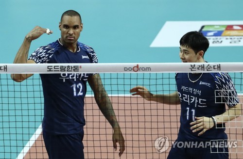 우리카드의 주득점원인 '괴물 공격수' 아가메즈는 지난달 16일 KB손해보험과 경기 때 내복사근이 파열돼 정규리그 최종전까지 뛰지 못했다.