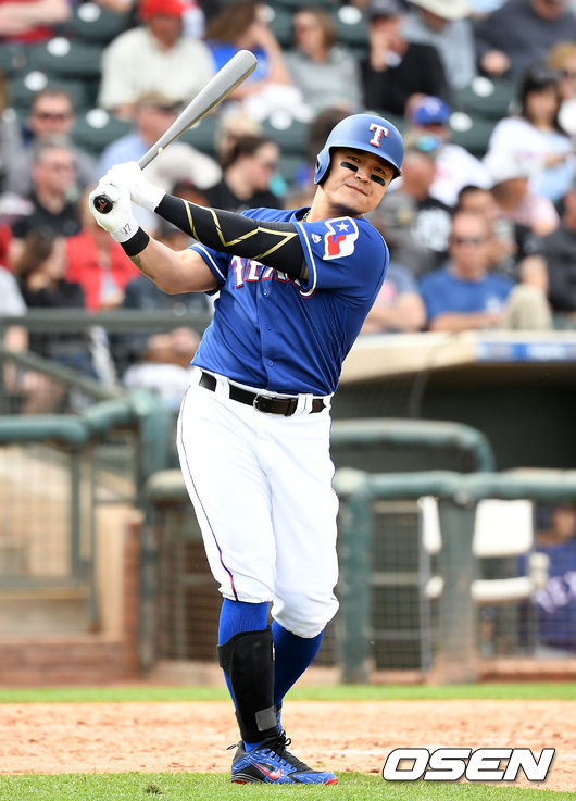 추신수는 18일(이하 한국시간), 미국 애리조나주 서프라이즈에 위치한 서프라이즈 스타디움에서 열린 애리조나 다이아몬드백스와의 ’2019 메이저리그(MLB)’ 시범경기에 8번타자 겸 우익수로 선발 출장해 2타수 무안타 1타점을 기록했다. 경기는 텍사스가 7-2로 승리했다.