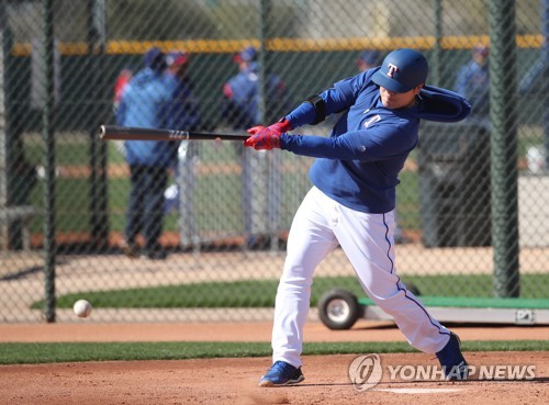 (서울=연합뉴스) 최인영 기자 = 추신수(37·텍사스 레인저스)가 미국프로야구 메이저리그 시범경기에서 2경기 연속 안타를 때렸다.