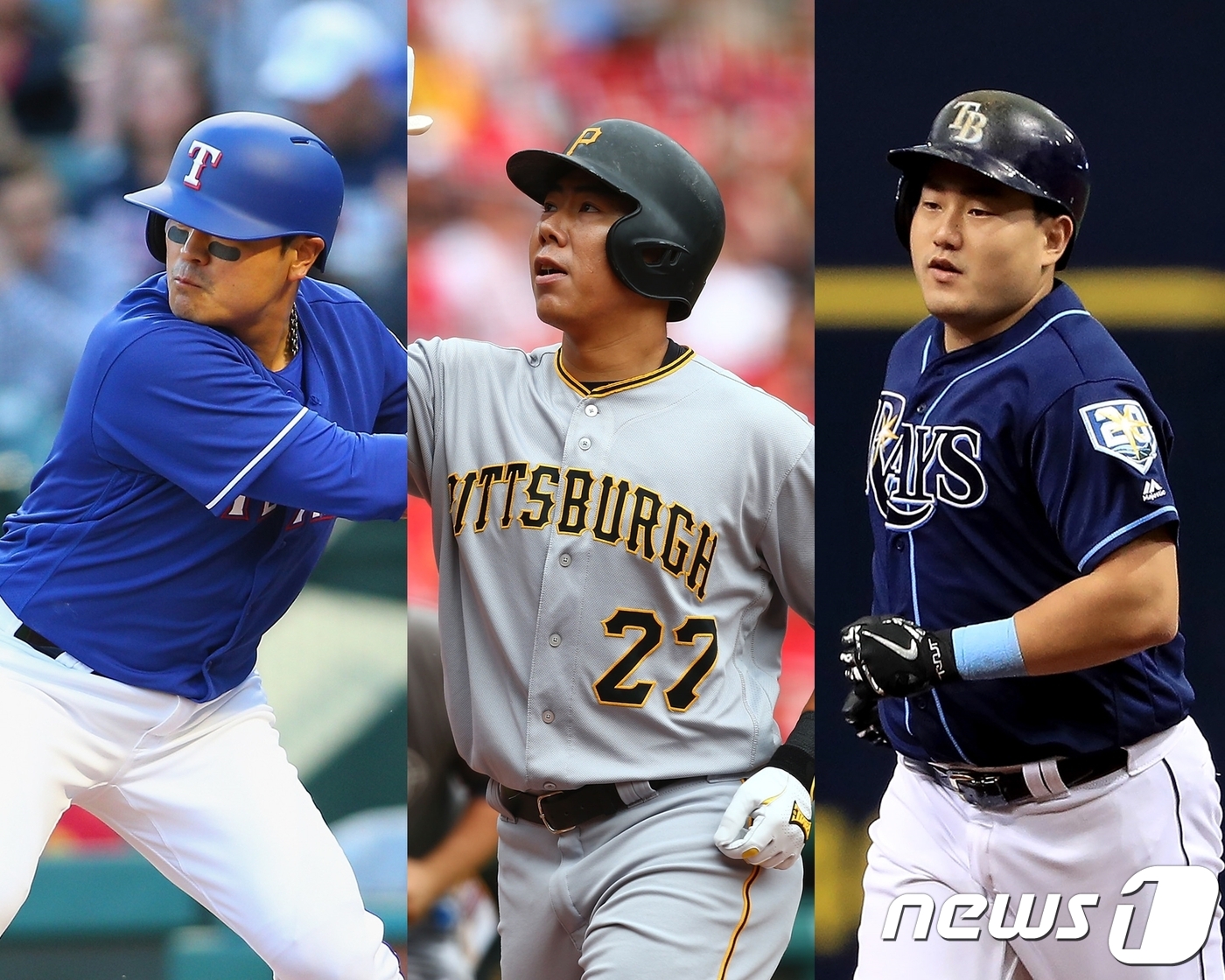 한국인 타자 추신수(37·텍사스 레인저스)와 강정호(32·피츠버그 파이리츠), 최지만(28·탬파베이 레이스)이 29일 2019 미국 메이저리그 프로야구 개막을 앞두고 있다. © AFP=뉴스1 |