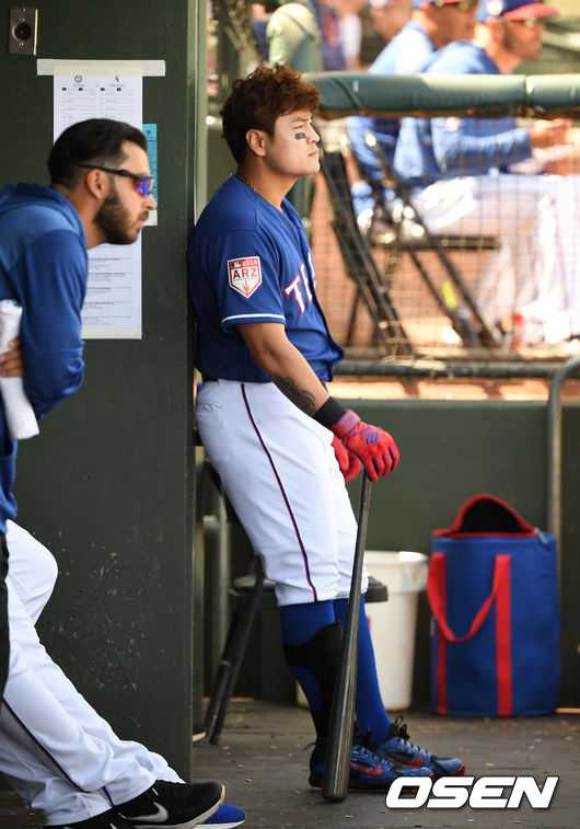 추신수는 1일(이하 한국시간) 오전 5시5분 미국 텍사스주 알링턴 글로브라이프파크에서 벌어지는 2019 메이저리그 시카고 컵스와 홈경기 선발 라인업에 이름을 올리지 못했다.