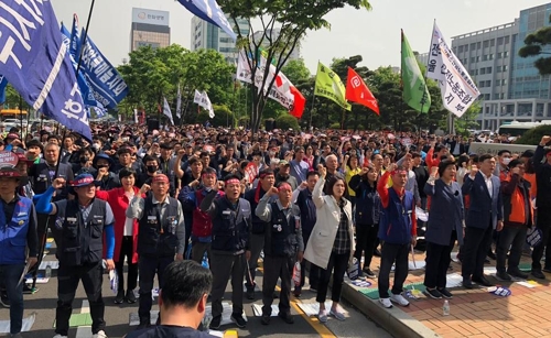 (울산=연합뉴스) 김용태 기자 = 민주노총 울산본부는 노동절인 1일 울산시청 앞에서 2019 세계 노동절 울산대회를 열었다.