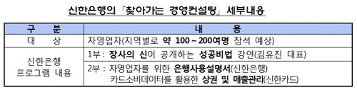 은행권이 본점 전담부서 또는 지역별 컨설팅센터에서 경영컨설팅을 해주고 있지만 거리상 제약으로 이용이 어려운 사람이 많다는 지적에 대한 보완 조치다.