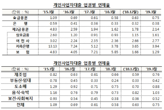 최근 연체율이 오름세를 탄 이유로는 지난 몇년 간 개인사업자대출이 가파르게 증가한 반면 상환능력 심사가 느슨했고, 지방 소재 금융회사의 연체가 증가한 점 등이 복합적으로 영향을 준 것으로 금융당국은 분석했다.