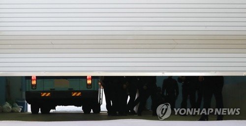 31일 오전 서울 서초구 서울중앙지법 구치감 앞뒤 철제 덧문이 내려진 채 수감자 호송 절차가 이뤄지고 있다. 법무부는 도주 우려 등 경비 강화 차원에서 철제 덧문을 내리기로 결정했다고 밝혔다.[연합뉴스] |