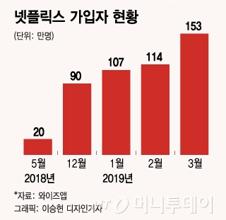 2016년 1월 국내 서비스를 시작한 넷플릭스는 지난해 중반까지만해도 국내 유료 가입자 20만명에 그칠 정도로 영향력이 미미했다. 하지만 지난해 하반기 IPTV(인터넷TV) 사업자인 LG유플러스와의 제휴 및 콘텐츠의 힘으로 4월말 기준 가입자 150만명을 돌파하며 국내에서 무시할 수 없는 미디어 플랫폼으로 급부상했다.