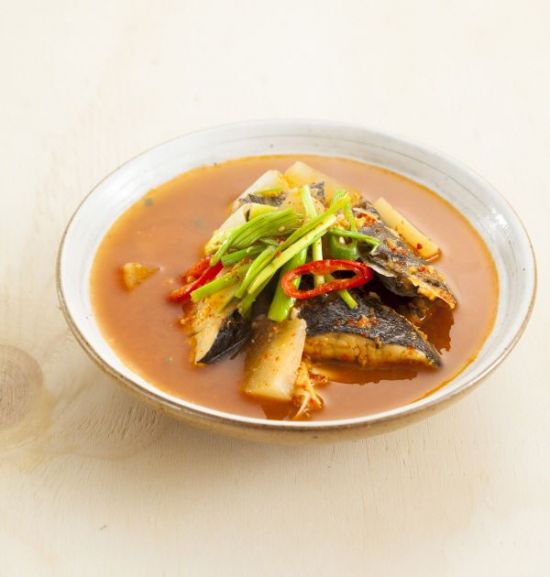 3. 냄비에 물 3컵을 넣고 끓여 끓으면 분량의 양념장 재료를 모두 넣는다. 무를 넣어 3분 정도 끓이다가 우럭을 넣어 끓인다. (고춧가루 1.5, 된장 0.5, 고추장 0.5, 국간장 1, 다진 마늘 2) |