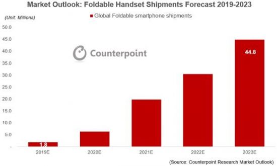 카운터포인트 "2019년 폴더블폰 판매량 180만대 예상"
