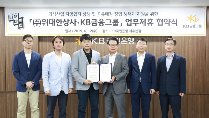공유점포플랫폼 '나누다키친'을 운영하는 위대한상사(이하 나누다키친)는 지난 12일 KB금융그룹과 '외식산업 자영업자 상생 및 공유매장 창업 생태계 구축'을 위한 업무 협약을 체결했다고 13일 밝혔다. 이번 협약으로 '나누다키친'을 통해 창업을 준비하는 자영업자들은 KB금융그룹의 종합금융서비스 및 컨설팅을 지원받을 수 있게 된다.