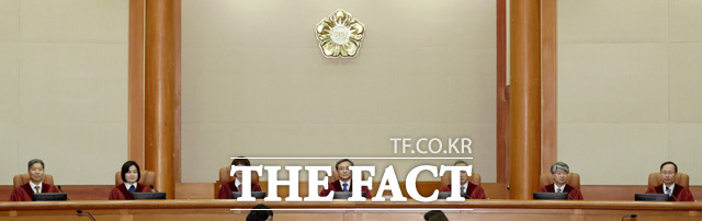 바람에 휘날리는 헌법재판소 깃발. /더팩트DB |