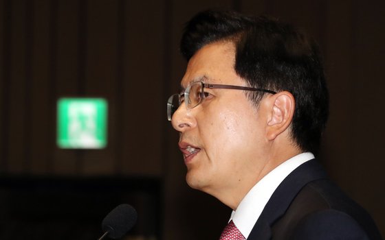 황교안 자유한국당 대표가 17일 서울 여의도 국회에서 열린 의원총회에서 모두발언을 하고 있다. [뉴스1] |
