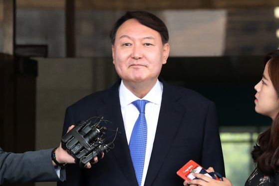 차기 검찰총장에 지명된 윤석열 서울중앙지검장이 17일 서울 서초구 서울중앙지방검찰청에서 취재진의 질문을 받고 있다. [뉴스1] |
