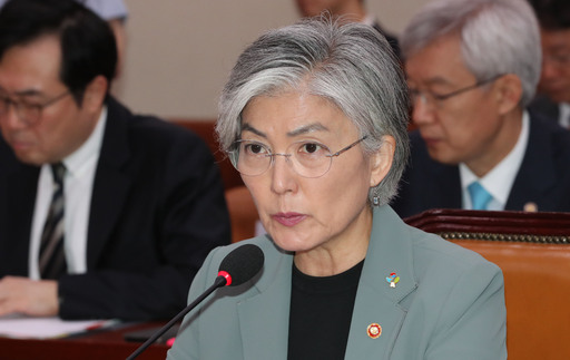 강경화 외교부 장관이 25일 오전 열린 국회 외교통일위원회 전체회의에서 의원 질의에 답변하고 있다. 연합뉴스 |