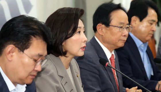 나경원 한국당 원내대표는 이날 오전 열린 당 연석회의에서 “경질이 됐어도 몇 번은 돼야 했을 조 수석이 법무부 장관으로 거론된다고 한다. 반헌법적 패스트트랙 폭거 주 책임자를 사법질서를 총괄하는 부처장으로 앉히겠다는 것”이라며 “이런 얘기가 나오는 것 자체가 대한민국 헌법질서에 대한 모욕”이라고 말했다.